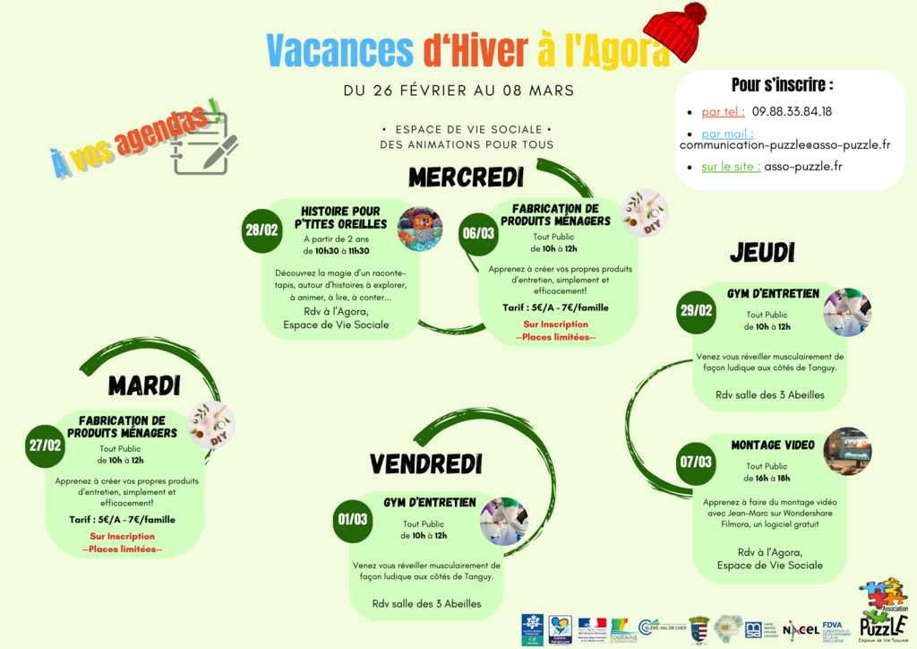 Pour les inscriptions sur les ateliers de vacances d’hiver n’hésitez pas à nous envoyer un mail à communication-puzzle@asso-puzzle.fr.