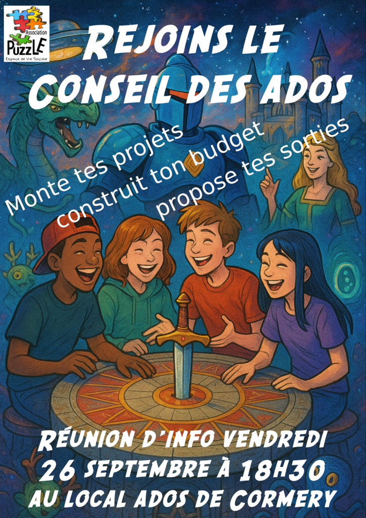 Nous allons mettre en place un nouveau dispositif : le CAP pour Conseil des Ados de Puzzle. Ouvert à tous. Les jeunes volontaires auront pour objectif de monter des projets à destination des autres jeunes ou des habitants. Il auront leur propre budget de fonctionnement. Les réunion auront lieu mensuellement les vendredis de 18h30 à 20h. Les jeunes impliqués auront droit à des sorties exclusives pour récompenser leurs efforts et leur engagement.