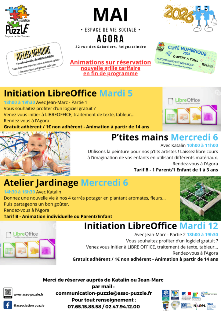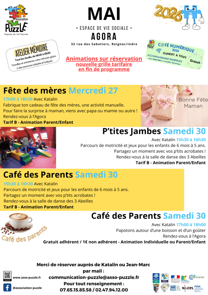 En mai à l’Agora et alentours, retrouvez un programme d’ateliers, d’animations familiales et de temps conviviaux, pour petits et grands.