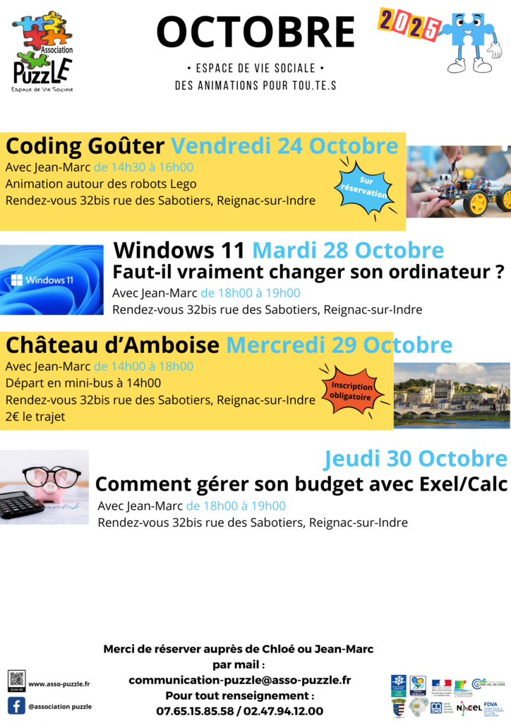 Jeudi 30 octobre → Atelier Numérique : Gérer son budget avec Excel/Calc