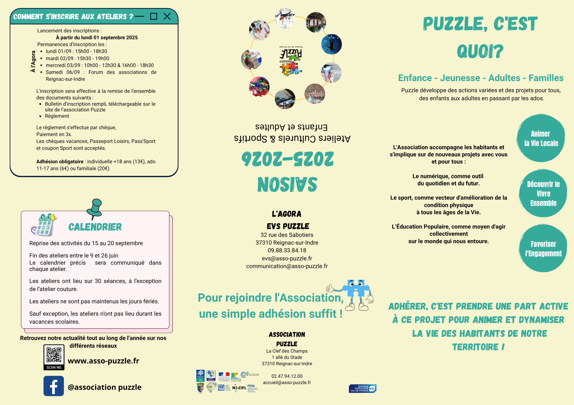 📞 09.88.33.84.18 (L’Agora) ou 02.47.94.12.00 (Accueil Puzzle)